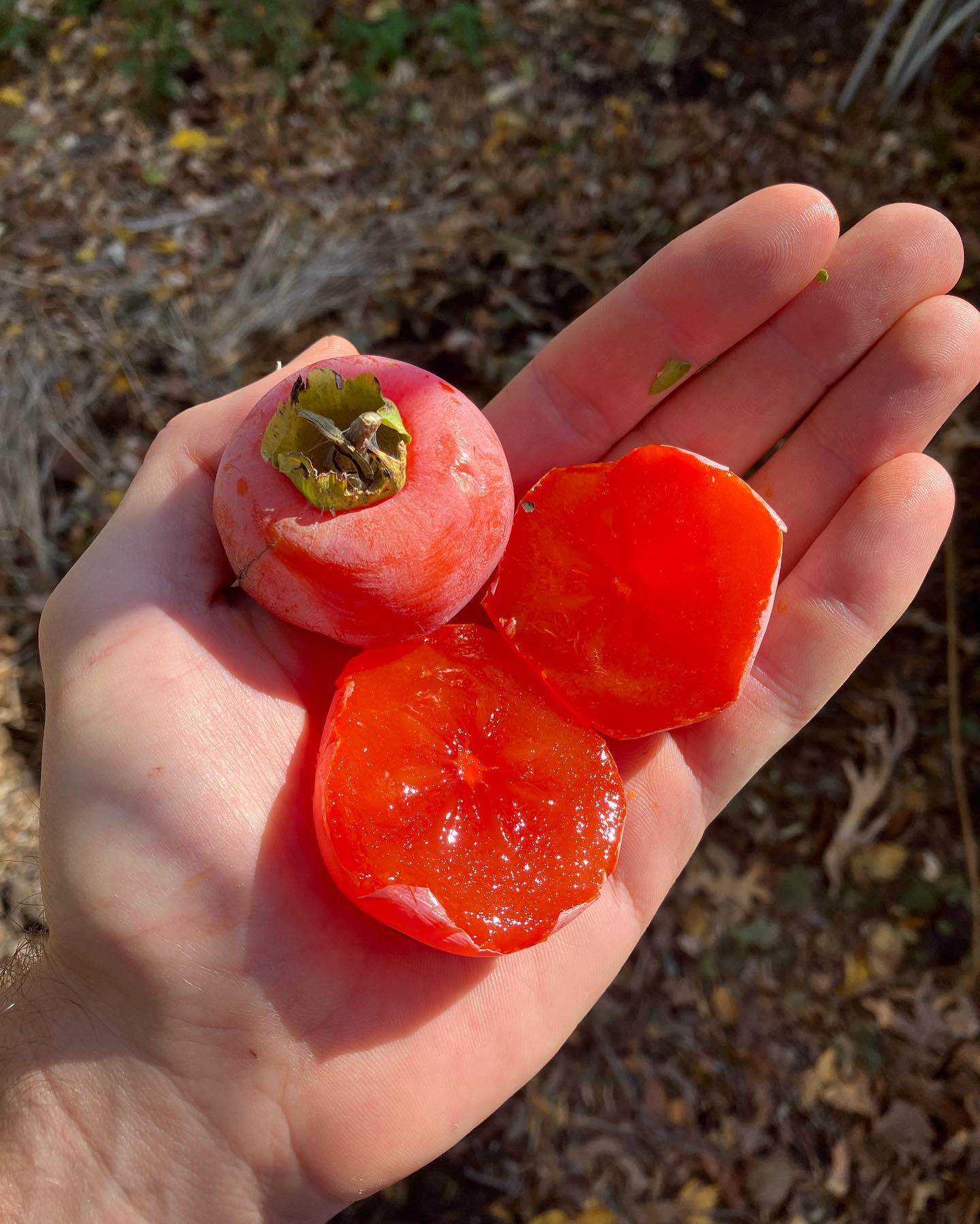 Fructele sunt mai mici decât la kaki-ul asiatic, dar foarte dulci și aromate când sunt complet coapte.